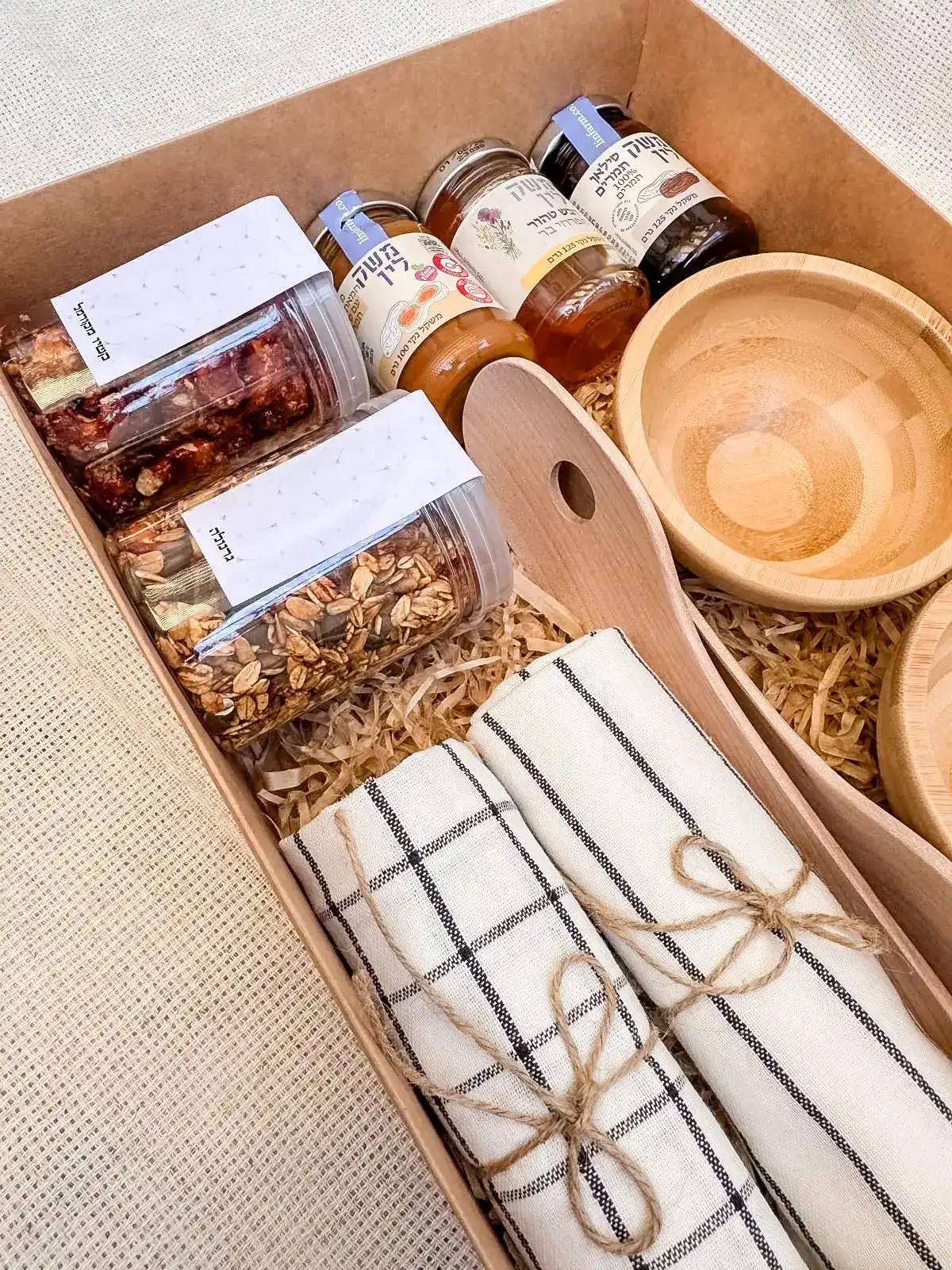 מרינדה NINJA דבש לימון ועשבי תיבול, 300 מ"ל מרינדה NINJA דבש ג'ינג'ר וצ'ילי, 300 מ"ל דבש טהור פרחי בר, 125 גרם סילאן טבעי 100% תמרים, 125 גרם קרש חיתוך במבוק סט כלי הגשה לסלט 2 חלקים, עץ ליבנה מלא מגבת מטבח