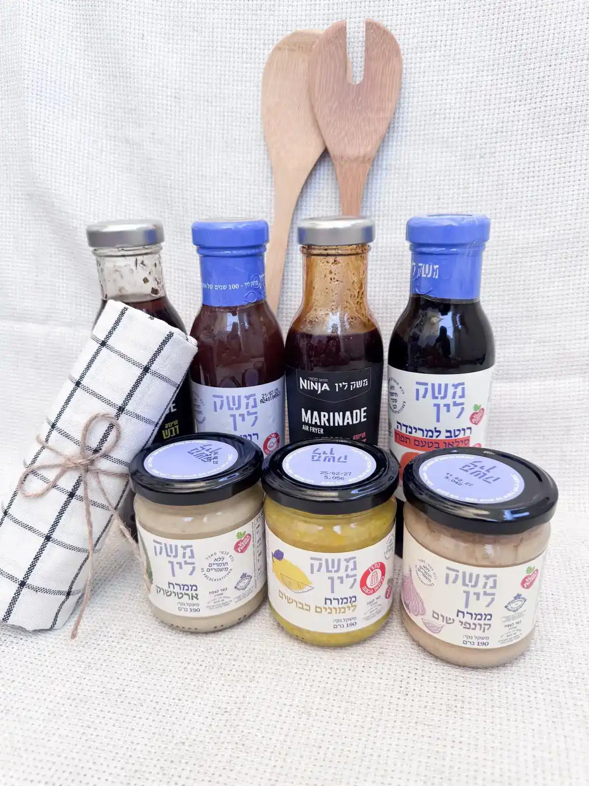 רוטב חרדל ודבש, 320 גרם מרינדה סילאן ותפוזים, 320 גרם ממרח ארטישוק, 190 גרם ממרח לימונים כבושים , 190 גרם ממרח קונפי שום , 190 גרם דבש טהור פרחי בר, 125 גרם סילאן טבעי 100% תמרים, 125 גרם שמן זית ישראלי כתית מעולה, 500 מ"ל מגבת מטבח